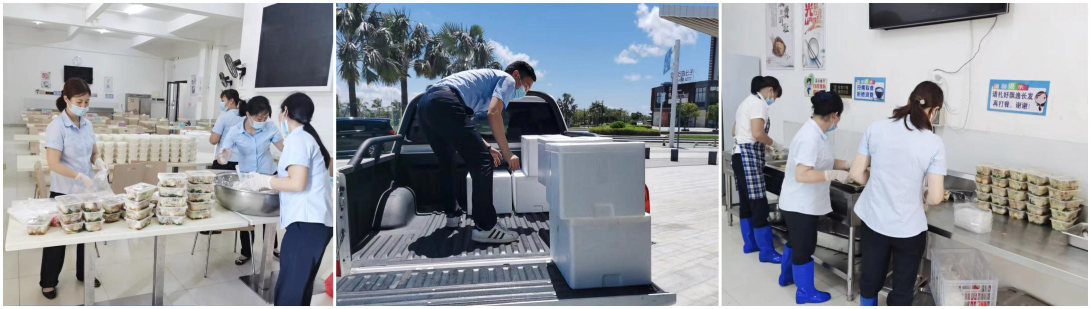 (中:集團下屬綜合服務公司蔡志英同志第一時間為醫護人員配送餐食)