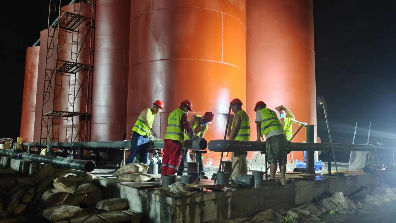 經(jīng)過一個月的埋頭苦干,克服了地基基礎(chǔ)薄弱、各類工藝管線設(shè)備錯綜復雜、“0804”電白區(qū)疫情突發(fā)事件、第9號臺風“馬鞍”過境等諸多難題,保證了節(jié)點工期,并于8月30日晚22時49分實現(xiàn)罐體試進水,8月31日下午18時22分實現(xiàn)生產(chǎn)調(diào)試通水,順利完成9月1日前全面完