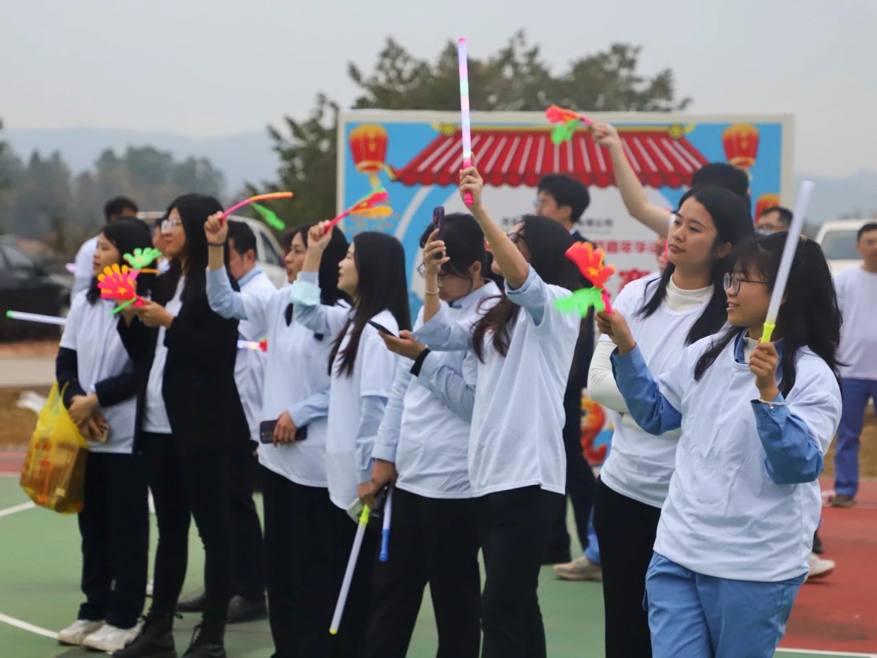 除此之外,在一片歡樂(lè)祥和的氣氛中,大家還即興以部門(mén)或個(gè)人進(jìn)行現(xiàn)場(chǎng)歌唱表演,游園活動(dòng)又秒切成“大型K歌現(xiàn)場(chǎng)”,在“歌手們”、“歌唱組合們”的高歌中,在“歌迷粉絲”的歡呼中、揮舞的熒光棒向天空傳遞彩光,發(fā)射快樂(lè)。
