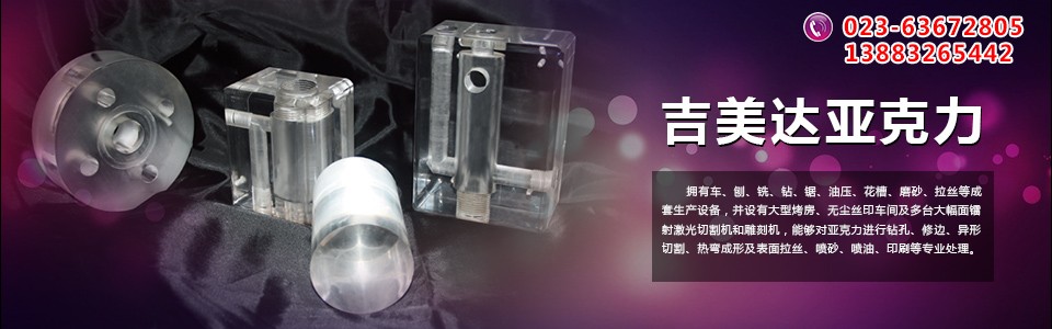 重慶吉美達有機玻璃制品有限公司于2012年4月份座落西部-重慶,是西南地區較早從事亞克力(有機玻璃)制品生產的專業企業。擁有車、刨、銑、鉆、鋸、油壓、花槽、磨砂、拉絲等成套生產設備,并設有大型烤房、無塵絲印車間及多臺大幅面鐳射激光切割機和雕刻機,能夠對亞克力進行鉆孔、修邊、異形切割、熱彎成形及表面拉絲、噴砂、噴油、印刷等專業處理。